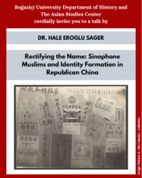 A Talk by Hale Eroglu Sager titled "Rectifying the Name: Sinophone Muslims and Identity Formation in Republican China" - February 17, 2020 - 5 PM