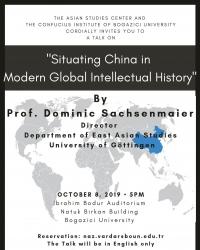 A Talk by Prof. Dominic Sachsenmaier titled "Situating China in Modern Global Intellectual History" - October 8, 2019 - 5 PM