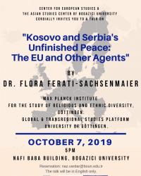 A Talk by Dr. Flora Ferati – Sachsenmaier titled "Kosovo & Serbia’s Unfinished Peace: The Role of the EU and Other Agents" - October 7, 2019 - 5 PM