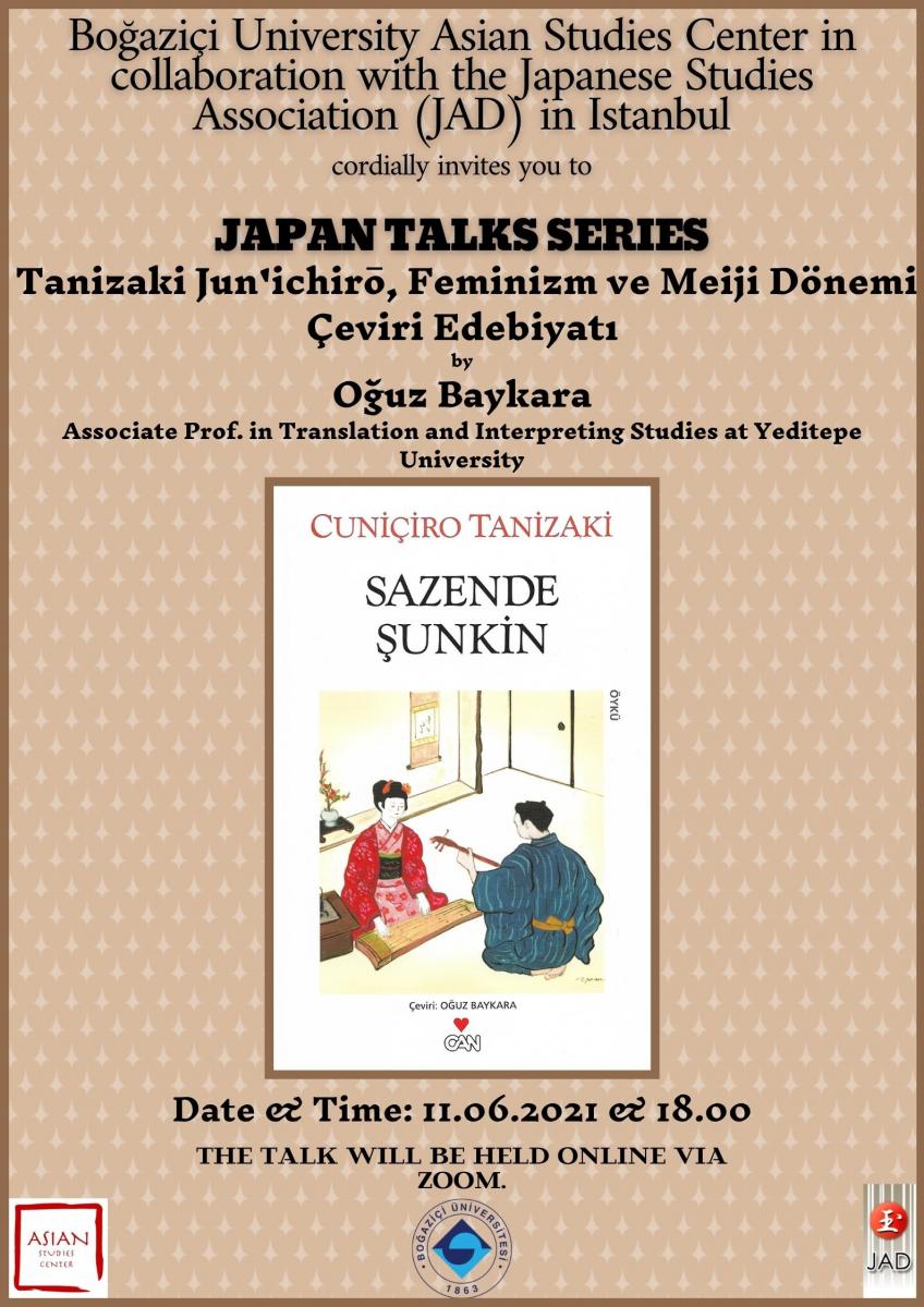 Boğaziçi Üniversitesi Asya Çalışmaları Merkezi, Japon Araştırmaları Derneği (JAD) işbirliğiyle İstanbul'da 11 Haziran saat 18.00'de Oğuz Baykara tarafından verilecek olan "Tanizaki Jun'ichirō, Feminizm ve Meiji Dönemi Çeviri Edebiyatı" konulu bir söyleşi düzenliyor.